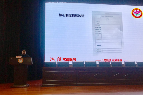 当晚,湘雅常德医院质控部组织三级综合医院评审专题讲座,特邀湘雅医院综合评价中心石莲桂老师、湘雅常德医院神经外科卢超老师进行授课。由质控部主任李亮担任主持,湘雅常德医院副院长肖目张出席,全院内审员和非值班临床医技科室人员参加。