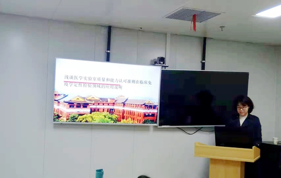 随后,张运丽副教授就医学实验室质量和能力认可准则在临床免疫学定性检验领域的应用说明,从检验科质量管理体系中人员、设施和环境条件、实验室设备、检验程序四个方面的内容做了详细的讲解,其中特别说明了免疫检验程序中检出限、符合率、精密度的验证问题,并且勉励我们要注重自身能力的提高,学会在压力中奋进。