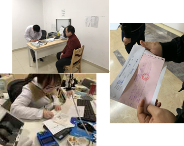 网络恢复正常后,由分诊台护士给三名患者建档挂号,医生参照病历本内容给患者补录相关流程,并根据实际就诊情况对患者进行补扣治疗费、材料费等,患者凭预交金交款单到急诊收费窗口缴费,多退少补。