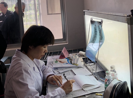 上午7点,专家团队早早从医院出发赶往贺家山职工医院。一到现场,双方专家们一起立即着手为耐心等候的离退休老干部进行血压测量、心电图、腹部B超、胸部X片、肝功能、血脂等各项检查,并根据检查结果和病情给予就诊,就饮食、生活等各方面提出建议,对有关并发症进行讲解。工作人员积极发放健康宣传资料,并耐心给予用药指导。