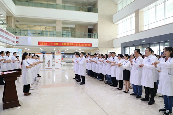 为响应世界卫生组织倡导的第十一个“世界手卫生日”,湘雅常德医院于5月31日在门诊一楼大厅举办手卫生宣传活动,旨在进一步提高全院手卫生的依从性和正确率,为广大患者树立正确的卫生理念。湘雅常德医院院长李远斌、副院长肖目张、副院长沙新平、副院长邓天亮及相关职能部门人员、临床医技科室主任、护士长,非值班医护人员,经万和与湘卫工作人员共同参与本次活动。活动由湘雅常德医院副院长肖目张主持。