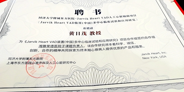 2019年6月1日,“Jarvik Heart人工心脏首次落地中国签约会”于上海市东方医院顺利召开。中国医师协会心血管外科分会会长、上海市东方医院刘中民院长与Hinchliffe教授共同为Jarvik Heart人工心脏项目首次落户中国进行合作签约,国内20余家单位心脏外科带头人及医生代表出席了签约仪式。