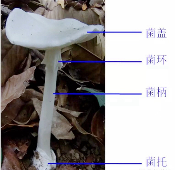 误食灰花纹鹅膏菌后,可引起多器官损害型蘑菇中毒,患者误食毒菇后6-24小时出现恶心、呕吐、腹痛、“霍乱型”腹泻等肠胃症状。随后进入假愈期,1至2天内无明显症状。假愈期过后,部分患者病情迅速恶化,出现肝功能异常和黄疸,最后肝、肾、心、脑、肺等器官功能衰竭,部分患者迅速死亡,目前尚无特效药治疗。因存在假愈期,极易造成病情已被控制的错觉,导致不能及时有效治疗,也是造成死率极高的原因之一。主要特征:子实体中等大小,5~10厘米,灰色至深灰色、暗褐色至近黑色,表面具深色纤丝状隐花纹。菌柄白色至浅灰色,常被浅褐色鳞片,近顶部有菌环。基部近球形,有菌托。