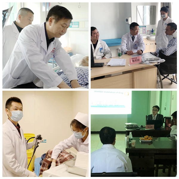 本次活动,我院组织9个科室共计17名专家组成此行的专家团队前往常德市第二人民医院。通过义诊、教学查房和疑难病讨论、学术讲座三部分内容进行。其中肿瘤科主任钟美佐,泌尿外科主任顿金庚、风湿免疫科主任游运辉、普外科知名专家黎有典、神经外科知名专家冯智君及消化内科、骨科医师、心胸外科、血液净化中心骨干参加义诊活动、专科医疗教学查房及疑难病讨论;普通外科护士长欧阳剑波、泌尿外科护士长潘冰鑫、风湿免疫科护士长李姗、消化内科护士长唐俊雅、血液净化中心护士长孙咏梅分别进行护理查房与护理指导;消化内科刘君副主任医师、泌尿外科符庭波医生分别为二医院医护人员进行《幽门螺杆菌与胃癌》、《浅究腺性膀胱炎创新疗法及病案综述》的学术讲座。