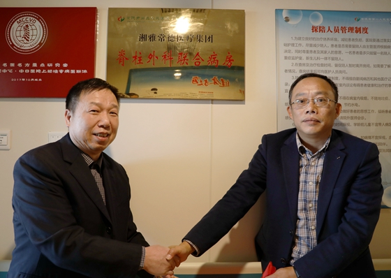 骨科、脊柱外科联合病房由湘雅常德医院骨科每周派专家定期坐诊、教学查房、学术讲座、指导手术,并协助完善科室管理、医疗安全、医疗服务等方面的工作制度,协助制定人才培养计划,重点培养学科带头人,促进人才结构和人才梯队建设。常德市第二人民医院骨科、脊柱外科优秀医护骨干完成日常的病房管理工作,在委派专家的带领和指导下,将基本医疗服务提升一个新的台阶。