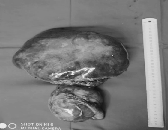 1月14日上午9时,在麻醉手术部的配合下,由肖广发主任医师主刀,曾虎副主任医师、聂云贵主治医师协助开始实施手术。由于腹膜后脂肪肉瘤术后复发率较高,达到41-71%,因此完整切除肿瘤、清除腹膜后脂肪组织是降低复发率的关键,这使得手术创面更大、涉及脏器更多,需要手术团队对整个腹膜腔及腹膜后脏器解剖结构了然如胸。肖广发主任凭借多年丰富的手术经验和高超的手术技巧,小心分离保护好重要的脉管结构,清扫切除后腹膜及脂肪组织,裸露双侧肾脏、输尿管、下腔静脉及腹主动脉,经过4小时的努力,终于将该巨大肿瘤完整切除,切除后的肿瘤重达5.5斤,相当于一个足月胎儿的重量,整个手术过程出血量不足100ml。目前,患者各项生命体征正常,择期便可出院。