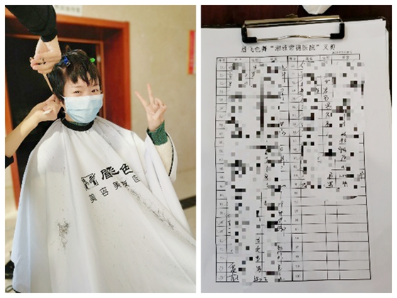 眉飞色舞总经理陈伟杰、友阿店店长及首席发型师组成义剪志愿者,从上午9点一直工作到下班,原计划中午休息两小时,可看到许多医生护士还排着队,干脆匆匆吃了两口饭后继续干,有个师傅甚至都没有顾得上吃饭和上厕所,我们劝他们休息一会儿再剪,他们却说,“医生护士比我们更辛苦,更伟大,今天条件受限,没有店子里剪的好,希望他们见谅”。