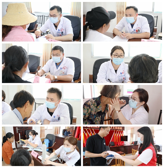 义诊现场,专家们详细询问村民病史、了解病情、提供健康指导,同时为村民进行量血压、测视力等健康体检项目,发放心绞痛、科学用眼等预防治疗手册,帮助他们掌握基本的健康保健知识。