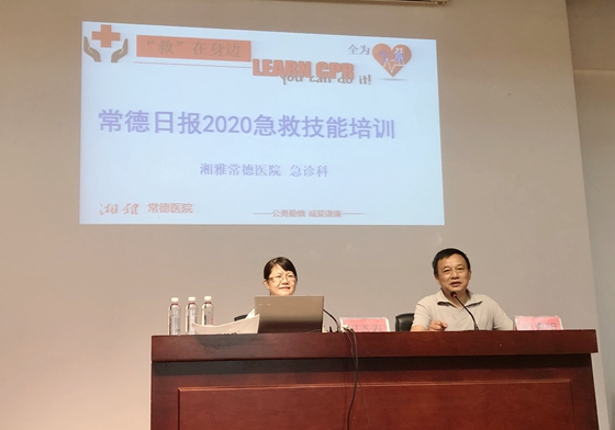 8月27日上午,湘雅常德医院急诊科、事业发展部联合组织培训团队赴常德日报社开展急救知识培训。此次培训由湘雅常德医院事业发展部副主任刘荣带队,急诊科主任何青春副教授、戴敏主治医师等担任此次培训讲师。此次培训由常德日报工会主席熊夏明主持。