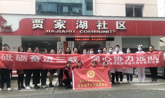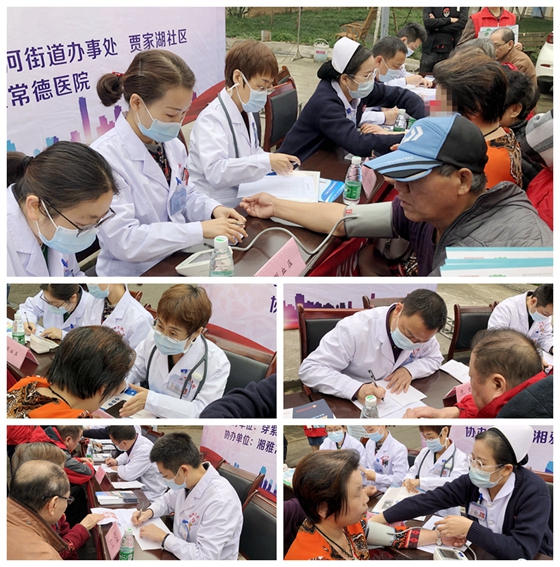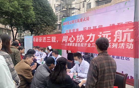 为庆祝湘雅常德医院开业三周年,将优质医疗资源送到基层群众身边,10月30日,由医院事业发展部组织,联合穿紫河街道办贾家湖社区居委会举办“砥砺奋进三年,同心协力远航”义诊活动在贾家湖社区举行。