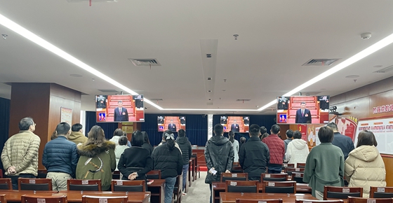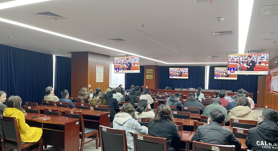 干部职工收看两会开幕式直播现场
