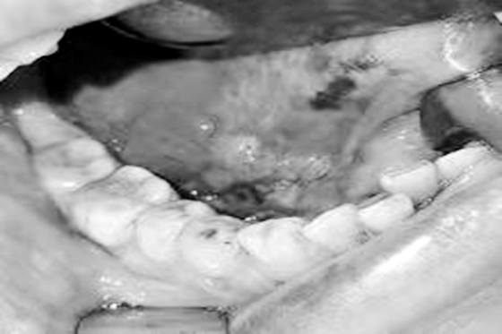 一个月前,湘雅常德医院口腔外科接治了一位特殊的患者。家住安乡的李爷爷今年70岁,就在今年的2月李爷爷因肺部感染入住当地医院,在住院期间患者突发脑梗,经过治疗病情有所好转,不幸的是两个月后患者因接不上气再次住院,被查出风湿性心脏病(二尖瓣狭窄),当地医院建议上级医院进行“心脏换瓣手术”,4月份患者于湘雅附二心胸外科就诊,经过相关检查,心脏彩超发现患者的二尖瓣出现了中度的狭窄,同时伴有房颤,心衰。心脏换瓣手术指征明确,手术势在必行。就在手术准备期间发现患者右舌底下原有的溃疡区又长了一个肿块,并出现快速长大的情况,口腔科会诊检查后被告知口腔癌(图1,图2)可能性极大,若要手术,手术风险极大,随时都可能要命。这个消息对于患者来说可谓是雪上加霜,患者的心脏手术被迫暂停取消。