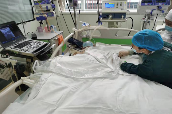 科室申请静疗会诊后,静疗团队高度重视,针对患者病情、血管条件及后续治疗进行全面评估,决定由经验丰富的肿瘤一区护士长卢娟进行B超引导下的PICC置管术。在ICU医护团队的密切配合下,大家克服重重困难,最终置管过程顺利,为患者成功留置了生命通道,同时,也实现了我院为高龄危重患者进行高难度置管技术的重大突破。