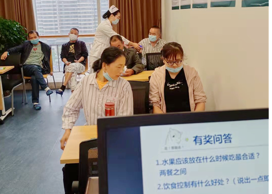 课上,糖尿病专科护士徐戊环以课件的形式向糖友讲解如何均衡美食与健康。其中,趣味的有奖问答环节是针对课件里的知识内容,答对者可获得小奖品1个,在帮助糖友加强记忆的同时更加调动了课堂积极性。
