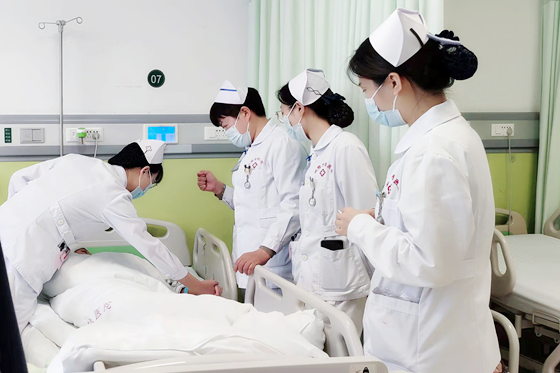 还记得湘雅常德医院神经外科开科初期,科内年轻护士多,工作经验不足,静脉穿刺经验不够,有一次科里收治了一位恶性胶质瘤两次手术后的女性患者,患者血管条件非常差,科内晚班护士几次穿刺不成功后急的只能给护士长打电话,刘冬喜护士长本来已经洗漱后准备休息了,接到电话立马赶到科室成功为患者进行静脉穿刺。完事后护士长一边安抚患者一边对值班的护士说:“不管有什么事情都可以给我打电话,但是你们也要加强学习,提升自己的能力!”