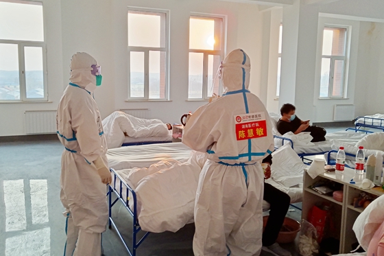 4月4日,到达长春,短暂的休整过后,湖南省医疗队的李文灿总领队和各市州领队就开始了紧锣密鼓的前期筹备工作,他们认真督导着工作有序进行,不放过任何一个环节,避免增加队员们的暴露风险。他们担负的不仅仅是带领我们打赢这场“疫情狙击战”,更是要带我们全员平安回家。与此同时,我们待在酒店也不能闲着,穿脱防护服成为我们的必修课,想要守护他人,就要先保护自己。在战场上他们是队伍的定心丸,而我虽然只是一名普通的ICU护士,但我仍将带着这份使命感,不退缩,不懈怠,坚持做好分内之事,与大家共同努力,早日战胜疫情,还长春一个朝气蓬勃的“春天”。