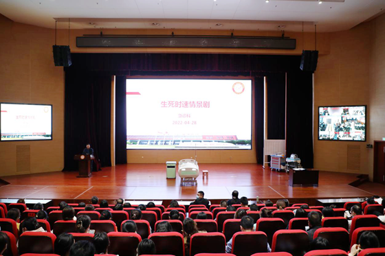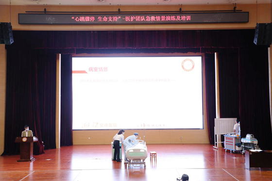 4月28日,湘雅常德医院医务部、护理部、急诊科、网络信息中心等多部门在学术报告厅联合开展的“心跳骤停 生命支持”急救情景演练及培训。活动要求所有临床医技科室的5人急救团队到现场观摩学习并采用网络音视频技术进行全院转播,副院长沙新平、医务部主任黄炯及相关部门负责人参与现场观摩。本次培训由黄炯主任担任主持。
