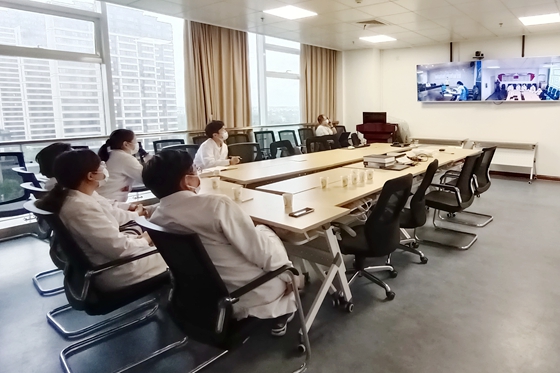 4月28日16:00时,湘雅常德医院呼吸内科杨泽刚主任、肾病内科成小苗主任、普通外科黎有典主任医师和消化内科郑平副主任医师与祁阳市人民医院胃肠胸外科邹晗医生进行了远程会诊。双方利用网络音视频系统流畅对接、音视频互动,详细推敲为该患者制定了治疗方案,以求最大程度的提高治疗预后效果。
