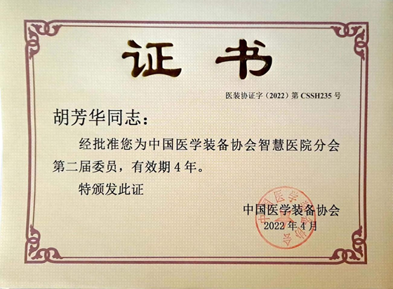 4月8日,中国医学装备协会智慧医院分会第二届委员会换届工作会议在北京顺利召开。为落实疫情防控要求,本次大会采取线上会议和线下会场同步进行模式。来自全国31个省、市、区的254位委员参加会议。湘雅常德医院网络信息中心主任胡芳华受邀参加会议并被任命为中国医学装备协会智慧医院分会第二届委员会委员,系常德区域医院信息化领域唯一当选。