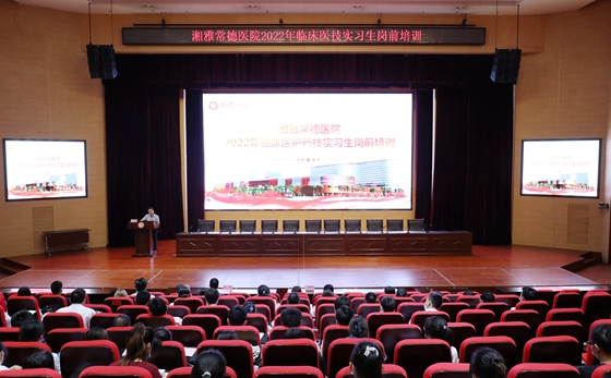 近日,湘雅常德医院2022年度临床医技专业实习生岗前培训会议在学术报告厅顺利举行,来自湖南医药学院、长沙医学院、吉首大学张家界学院、川北医学院、常德职业技术学院等7所高校的70余名临床医技护专业学生参与培训。党委委员、副院长兼工会主席汤爱国及相关职能部门负责人参加会议。本次培训会由医务部科教办副主任陈羿戈主持。据悉,截至目前,医院已有157名实习生完成岗前培训并顺利入科实习。