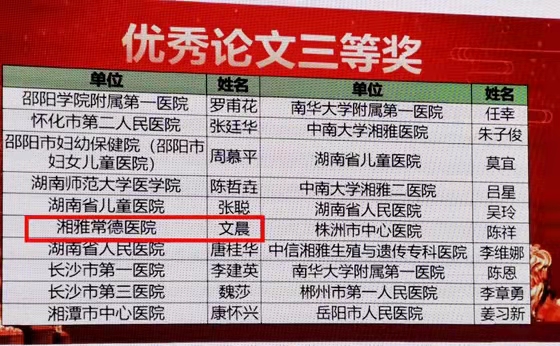7月10日,由湖南省医师协会检验医师分会主办的2022年湖南省检验医师年会暨第七届湖南省检验与临床学术会议在省会长沙顺利举行。湘雅常德医院检验科主任谢卫民及向立化、文晨等检验人员受邀参加此次会议。经过多轮激烈竞争,向立化检验师斩获“全省优秀临床案例”二等奖、文晨检验师斩获“全省优秀论文”三等奖优异成绩。
