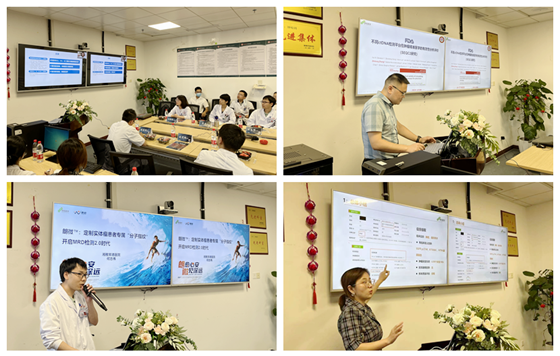 心胸外科何志伟主治医师带来“实体瘤患者MRD检测”相关研究成果,他从微小残留病灶(MRD)的概念入手,逐步将国内外指南规范对于ctDNA/MRD在肺癌中的研究进展及证据级别做出了概括梳理。刘茂林主治医师、雷鹏主治医师及参会的各科室专家对MRD领域面临的临床困境进行了讨论,并强调目前病理仍是肿瘤诊断的“金标准”。燃石医学公司李斯琦以燃石医学的检测报告为例,系统地讲解了NGS报告的临床解读方法。