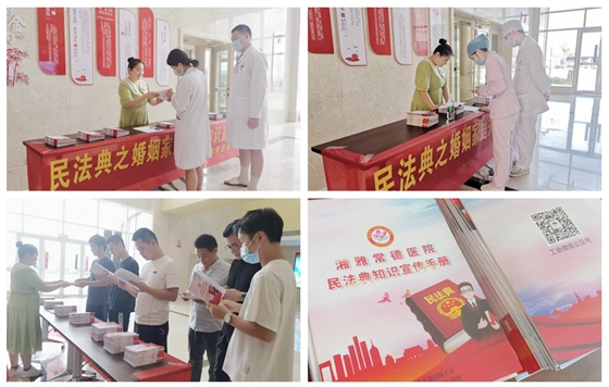 为构建医院法治管理体系,推进医院法治建设工作,全面提高我院依法管理水平和全体医务人员的法律素质,湘雅常德医院工会于8月26日在行政楼进行了民法典之婚姻家庭关系宣传活动。