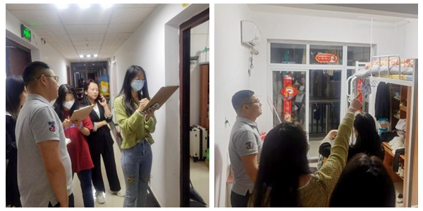 为切实做好医院实习生国庆期间安全管理及疫情防控工作,进一步了解医院临床医学、临床护理及相关专业实习生在临床各科室实习生活及宿舍住宿情况,9月29日晚,医务部科教办陈羿戈副主任带领相关工作人员前往致雅园实习生宿舍走访与安全大检查工作。