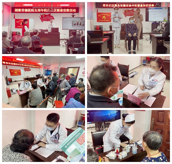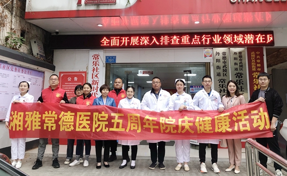 为方便百姓在家门口看病就医,近年来,湘雅常德医院持之以恒深入社区开展健康宣教、义诊活动,受到百姓的由衷欢迎。为引导群众养成健康生活方式,提高卫生健康知识素养,值此湘雅常德医院建院五周年之际,10月26日,湘雅常德医院前往常乐社区,为社区居民带去健康知识及义诊活动。