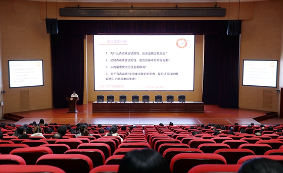 培训讲座上,我院药剂科临床药师曾柳以《β内酰胺抗菌药物皮试再认识》为题,从常见临床问题入手,对药物过敏反应的分类、青霉素类/头孢类过敏原理、皮试的目的及意义等内容做了深入浅出、详细具体的分析与讲解,并且针对抗菌药物临床中存在的有关皮试的若干问题进行了逐一解答,现场反应良好。