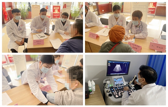 医疗团队到达现场时,已有数十名群众在排队等待就诊。首先,泌尿外科许强主治医师、健康管理中心葛菲凡主治医师分别以《前列腺:男性健康的守门员》《健康生活,从心开始》为主题开展健康知识科普讲座。随后,医护团队为社区居民开展健康咨询、测量血压、彩超检查等免费义诊活动,并为参与前列腺癌及前列腺增生疾病筛查的群众进行筛查结果健康评价与指导。医务人员们耐心接诊患者,结合居民的健康需求,解答居民关于相关疾病的预防和诊疗疑惑,讲解医学保健知识和技能,倡导树立健康生活理念。
