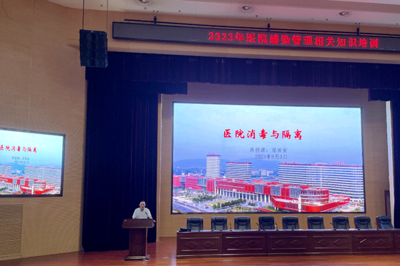 8月3日晚,湘雅常德医院质控部在学术报告厅开展“医院消毒与隔离”、“环境物表清洁消毒和医疗废物管理”相关知识培训。全院各临床医技科室非值班医务人员、后勤相关人员、保洁主管及保洁员共计300余人参加了此次培训。