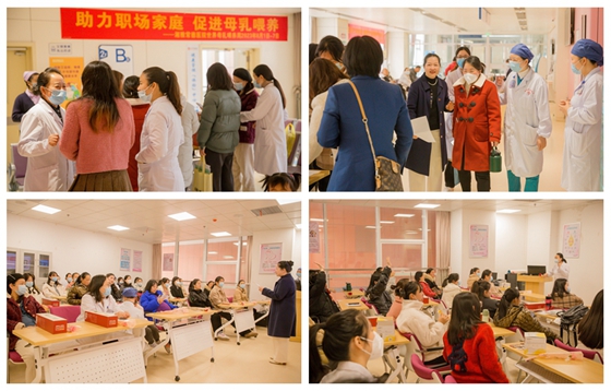 活动现场,张菲主任主持活动开幕式并致辞:“我们赋能产妇,帮助女性实现顺利分娩、母乳喂养目标;母乳是妈妈送给宝宝们的第一份礼物,也是最好的礼物。”随后,廖思敏助产士开展了“母乳喂养知识”的授课,并与孕产妇及家属进行现场实操演示。在有奖问答环节,现场气氛十分活跃,不仅增加了准妈妈们的母乳喂养知识储备,还精准解锁了科学的母乳喂养姿势。同时,会上邀请了康复科主任吴逸对“产后康复”相关知识及孕期注意事项进行答疑解惑,让准妈妈们认识到产后康复的重要性。