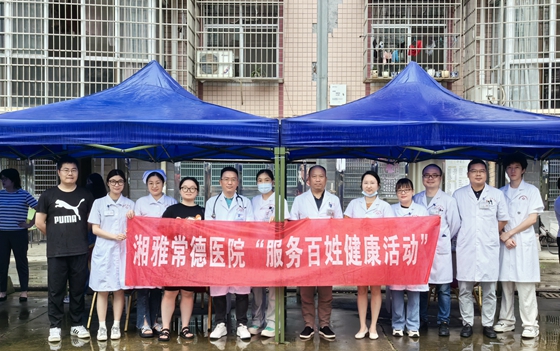 为提升人民群众健康意识和水平,6月25日,湘雅常德医院在柳叶湖旅游度假区七里桥街道戴家岗社区开展服务百姓健康活动。此次活动配合常德市计划生育协会、柳叶湖旅游度假区计划生育协会联合开展,由医院事业发展部牵头,湘雅委派专家、中西医结合科主任蒋荣鑫副教授、儿科齐飞主任医师、产科邬吉婷副主任医师、肾病内科郭丹副主任医师、眼科卓秋华副主任医师、泌尿外科刘理专副主任医师、整形美容科激光医师谢彩艳、中西医结合科护士长刘艳朋等11人组成健康服务团队参加。