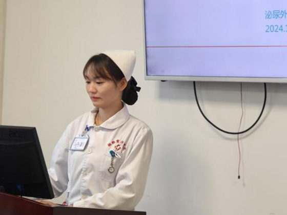 接着,泌尿外科造口联络员陈海婷老师介绍了《造口评估及常见并发症》的内容,深入探讨了导致渗漏的原因——主要是复杂的身体形态,并结合实际临床案例,详细阐述了如何有效预防和解决渗漏问题,为造口人及家属们提供了宝贵的指导。