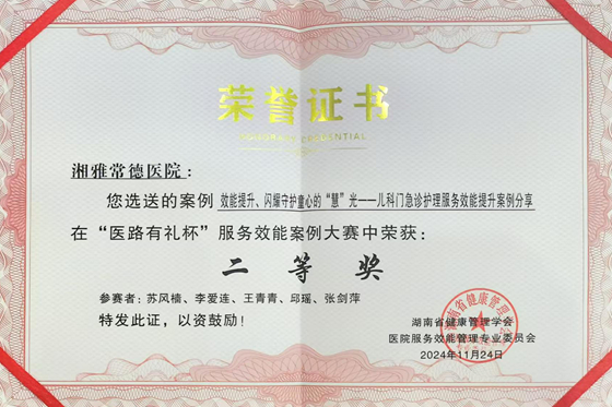 在“医路有礼杯”服务效能案例竞赛环节中,由医院护理部苏风樯作为代表,推送的《效能提升、闪耀守护童心的“慧”光--儿科门急诊护理服务效能提升》作品从省内外推送的27个案例中脱颖而出,成功斩获了二等奖。该案例充分展示了医院在服务创新、流程优化、患者就诊体验改善等方面积极探索的经验。