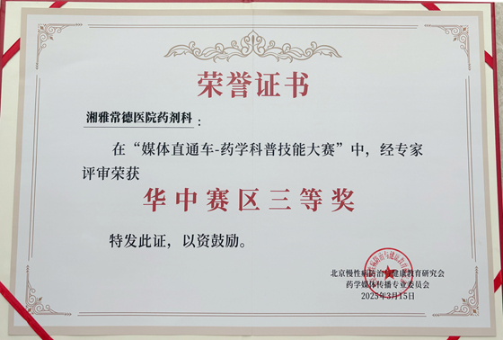 近日,由北京慢性病防治与健康教育研究会、药学媒体传播专业委员会主办的首届“媒体直通车——药学科普技能大赛”圆满落幕。在这场备受瞩目的赛事中,湘雅常德医院药剂科的参赛原创视频作品《生长激素,真的是儿童长高的神药吗?》以独特的视角和精彩的呈现方式,在众多参赛作品中脱颖而出,赢得了评委们的一致认可,荣获华中赛区三等奖。该作品由我院药剂科曾柳、熊亚群、陈锋、陈友姣、郭艳共同创作完成。