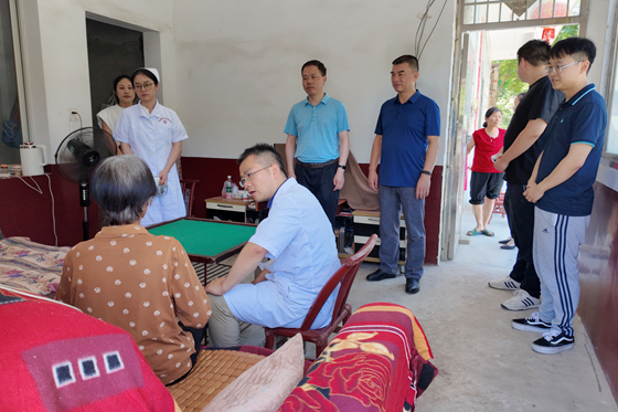 随后,胡卫锋带队看望医院在热市镇岩桥坪村助力乡村振兴的工作队员,并对几户村民送医上门。入户后,聂云贵主任及护理部苏风樯主管护师为现场老人详细检查身体,为患者家属交代了服药注意事项并结合病情开展了健康教育。