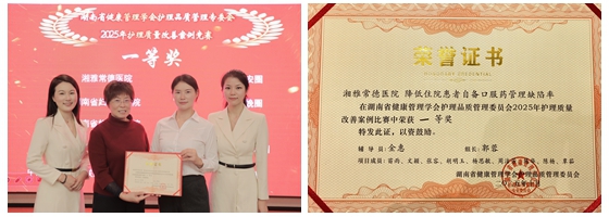 此次获奖标志着湘雅常德医院在患者用药安全管理领域的前沿探索与实践成效,获得了省级专家和同行的广泛认可与高度评价,不仅彰显了医院护理团队的专业实力和多学科协作的高效机制,更体现了护理团队为提升护理质量、为患者提供专业服务不懈努力的向上精神。该项目的成功实践,积极响应了国家患者安全行动方案的号召,紧密落实了等级医院评审的核心要求,充分体现了医院在系统化、标准化管理方面的成效。湘雅常德医院护理团队将以此为契机,持续深化卓越护理服务内涵,进一步加强多维品质管理工具的应用,推动医院护理质量和安全持续改进,助力医院高质量发展。