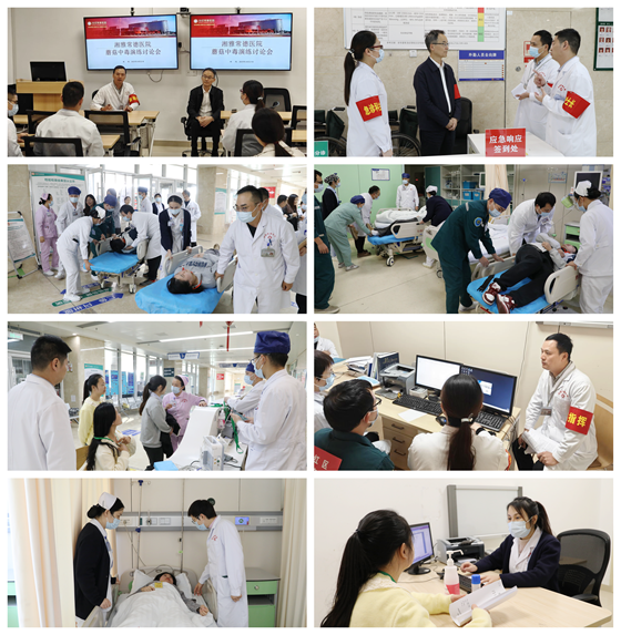 演练于下午2时30分正式开始,模拟某工地10名工人因食用自采野生蘑菇后出现呕吐、腹泻等症状,其中2人病情危重。急诊科接警后立即启动应急响应,迅速上报医务部并通知院领导。医院随即启动突发公共卫生事件应急预案,开通绿色通道,实施“红、黄、绿”三级分诊机制,确保患者得到及时、有序的医疗救治。