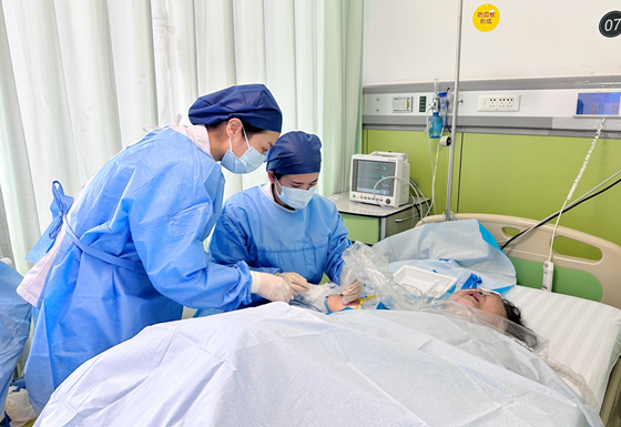 “这是一种理想选择。它比普通留置针更持久、更耐刺激,又比PICC创伤小,特别适合治疗周期为一至四周的患者。”欧阳波主任解释道。为确保成功,团队制定了周密方案:借助超声引导技术,实时清晰显示血管位置、深度与走向,实现精准穿刺。