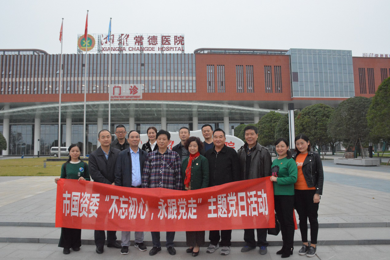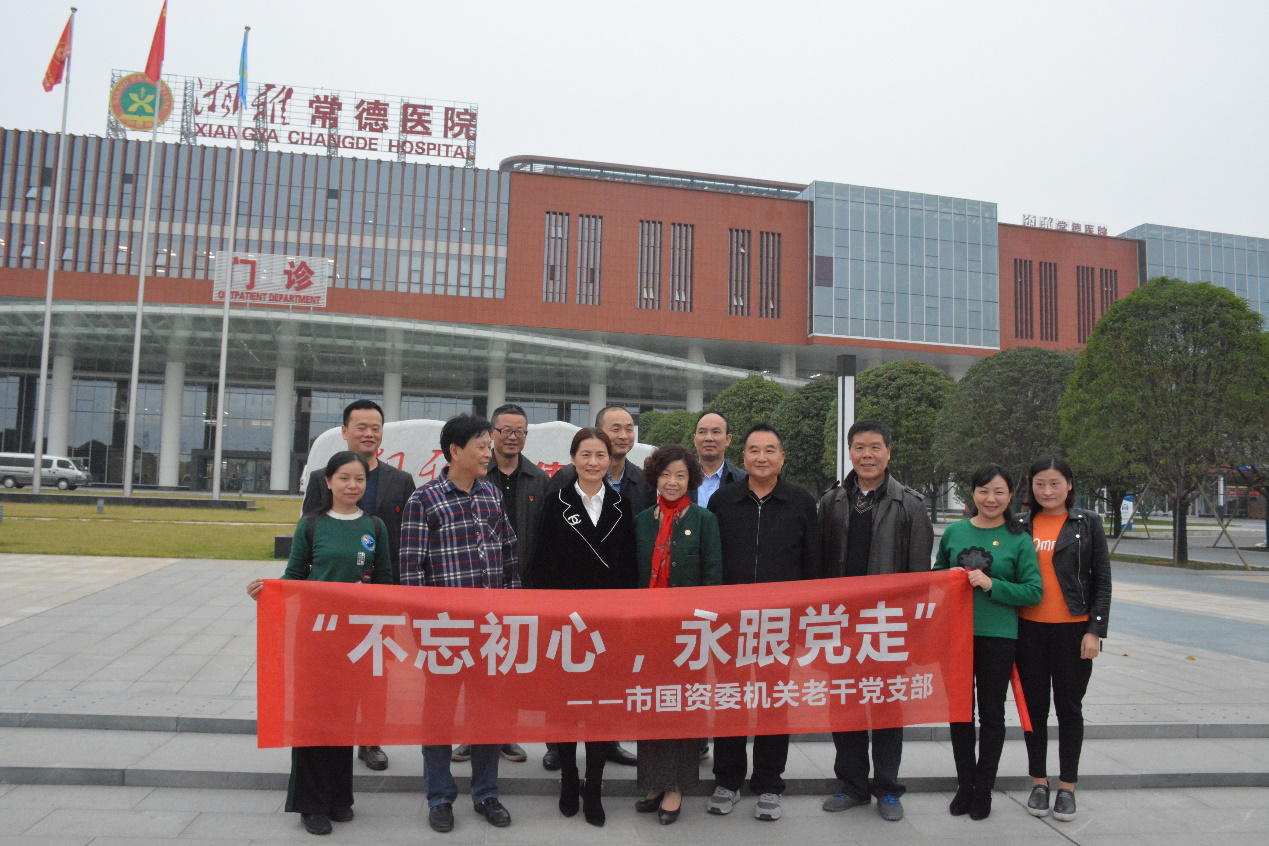 为深入推进“两学一做”学习教育常态化制度化工作,激励广大党员以良好的精神风貌和优异的工作成绩庆祝党的十九大胜利召开。2017年10月25日下午,市国资委机关老干党支部在湘雅常德医院举办了“不忘初心,永跟党走”的主题党日活动。支部成员在市国资委党委副书记、副主任胡彬彬,副主任陈建军、张立群的带领下共同参观了即将开业的湘雅常德医院。医院党委副书记倪众慧、副院长沙新平、纪委书记胡爱军陪同参观。