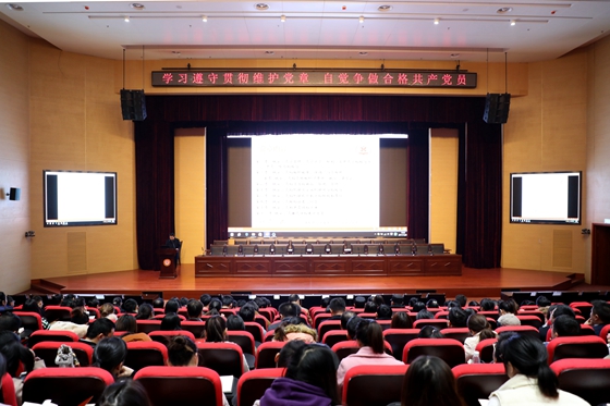 2017年12月26日,是中国人民的伟大领袖和导师毛泽东同志诞生124周年。为深切缅怀这位中国共产党和中华人民共和国的缔造者,为深入学习贯彻党的十九大精神,切实提高我院全体党员的思想认识,推进“两学一做”学习教育工作,当晚,湘雅常德医院党委副书记、院长李远斌同志以“学习遵守贯彻维护党章,自觉争做合格共产党员”为题,为我院全体党员及经康药业、经万和物业全体党员在行政楼学术报告厅讲了一堂生动的党课。会议由党委副书记倪众慧同志主持。
