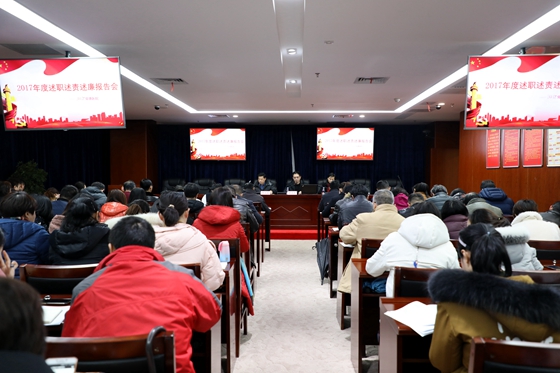 2018年1月24日晚,按照上级党委“双述双评”安排部署,我院在行政楼1012会议室召开了2017年度述职述责述廉报告会,会议由党委副书记、院长李远斌同志主持,经投集团党委委员、纪委书记段军同志莅临指导会议。医院党政班子、行政科室正副主任,业务科室主任、护士长,技术组长,后勤班组长,托管项目负责人共计80余人参与了本次会议。