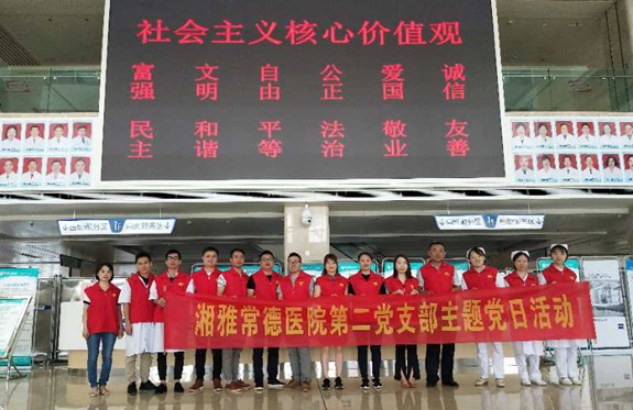 以党的十九大精神为指导,围绕湘雅常德医院以服务患者为核心的主题,2018年5月16日,湘雅常德医院第二党支部开展了“党员志愿服务活动”的支部主题党日活动。本次活动由支部书记袁琼同志主持,由支部委员胡昌凯同志组织大家积极参与。活动内容围绕“奉献、友爱、互助、进步”的志愿者服务精神进行,在湘雅常德医院门诊大厅开展了为患者提供医院路线指导、就诊服务、免费测量血压、提供咨询建议等志愿服务活动。