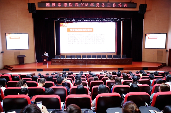 2018年5月22日晚7点,湘雅常德医院党委书记曾克非同志以《全面加强医院党的建设》为题,党委副书记、院长李远斌同志以《党支部工作感悟和要求》为题,在我院学术报告厅上了一堂凝聚高度政治思想意识的党务培训课,会议由党委副书记倪众慧同志主持,党委委员肖目张、纪委书记胡爱军参与了本次培训,党政办公室主任、各党支部、工会和团支部等小组长及以上人员共计150余人汇聚一堂,聆听了本次党务培训课程。