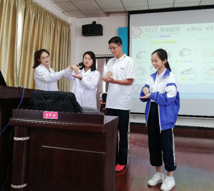 为积极响应党的十九大“健康中国”战略,大力弘扬“奉献、友爱、互助、进步”的志愿者精神, 5月23日下午,第四党支部全体成员来到常德常英学校开展“健康宣教”系列活动,向全校师生进行健康知识宣教及相关应急急救处理。