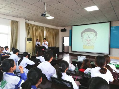 活动内容丰富多彩,在健康知识讲座环节,神经内科以《癫痫-应急预案》为题对生活中发生癫痫后应该做哪些应急处理进行了健康科普教育;神经外科给大家讲述了如何远离寄生虫并带领同学们共同学习了正确的洗手方法,现场进行了手卫生规范操作演示,耐心指导同学们正确洗手。口腔科为大家普及了正确刷牙的方法以及如何注意口腔卫生,耳鼻喉科给大家讲解了在学校如果出现鼻出血应该如何处理。目前近视在学生中出现得越来越普遍,针对这种现象眼科在现场教大家如何预防及改善近视。妇产科则给大家讲述了小朋友是怎么来的。几位老师的授课内容通俗易懂、生动有趣、引人入胜,活动现场气氛热烈,同学们不仅听得津津有味,还积极参与互动。