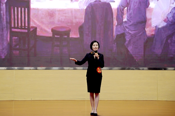 党政办公室凌芳以《守望生命》为题,讲述优秀共产党员张桂英教授在自己岗位上的感人事迹,展示了一位始终心怀热爱,以仁爱、责任、奉献为人生坐标,用达观进取的精神在自己的岗位上默默奉献、不忘初心,为实现“中国梦”不断努力的优秀老党员风采。