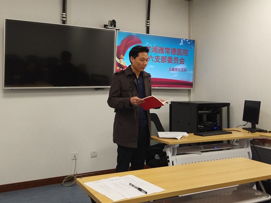 3月27日下午,第六党支部在超声科示教室召开了第一季度支部党员大会暨三月份主题党日活动,院党委委员邓天亮同志参加了本次会议。